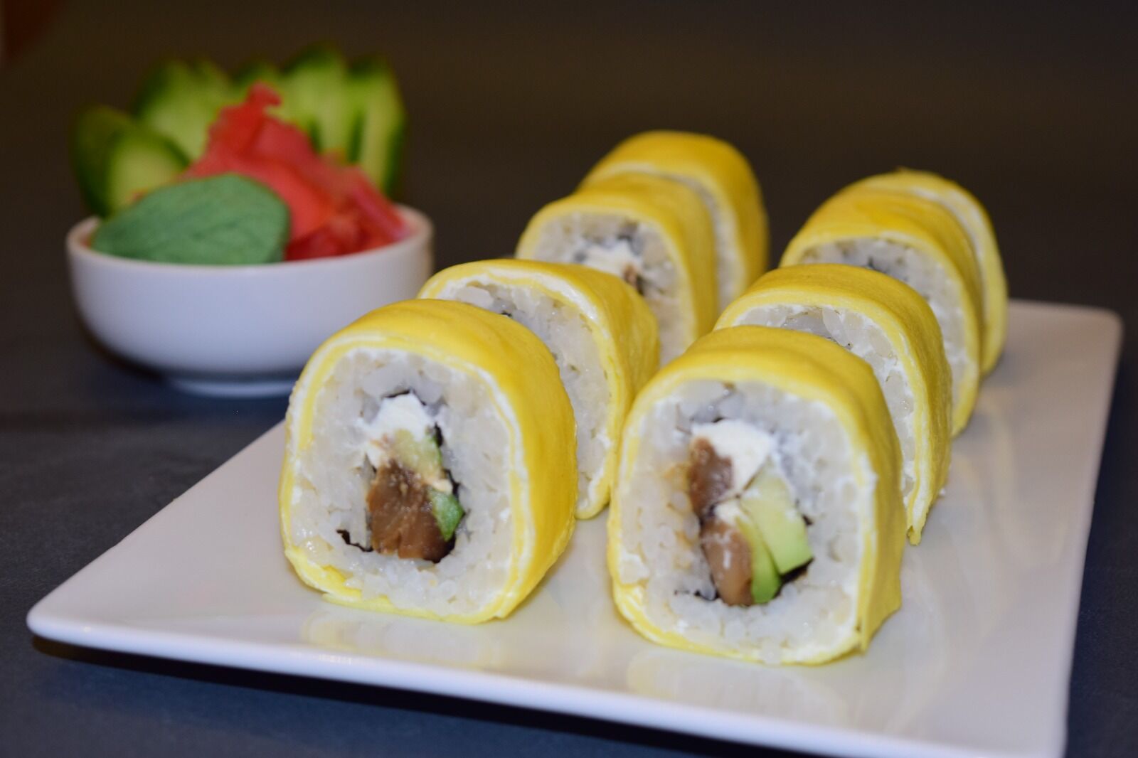 Rice, shiitake mushroom, cream cheese, avocado omelette.