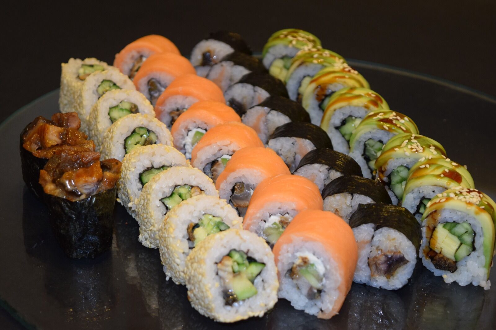 California unagi, green dragon, philadelphia unagi, inyan, 2 gunkans unagi.